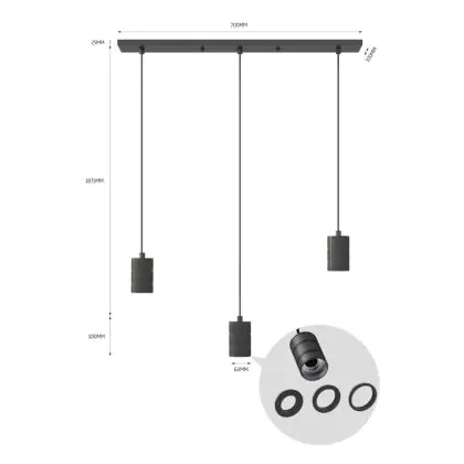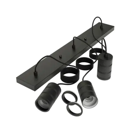 Calex Retro Pendelarmatuur Cordset Rechthoekig Metaal Zwart |incl. kabel 2 Meter - Geschikt voor 3xE27